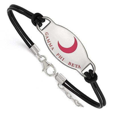 Black Bow Jewelry Greek Life Sterling Silver Gamma Phi Beta Enamel Black Leather Bracelet - 7 in.