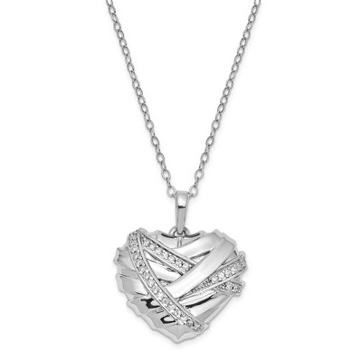 Black Bow Jewelry Rhodium Plated Sterling Silver & CZ Heart Ash Holder Necklace, 18 Inch