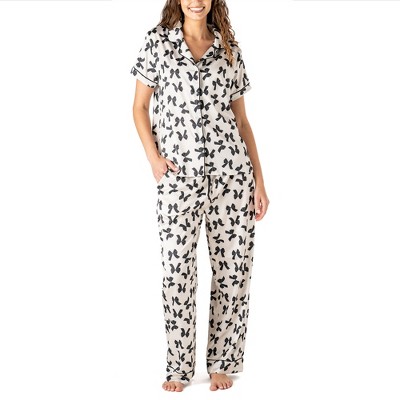 Hello Mello Women's Boots & Bubbles Satin Lounge Top and Pants, 2-Piece Pajama Set