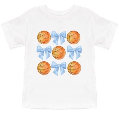 Basketball and Blue Bows Watercolor - Toddler Short Sleeve Graphic T-Shirt