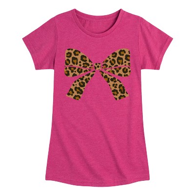 Girls' - Instant Message - Leopard Print Bow Fitted Short Sleeve Graphic T-Shirt