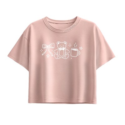 Girls' - Instant Message - Teddy Bow Cocoa Short Sleeve Boxy Graphic T-Shirt