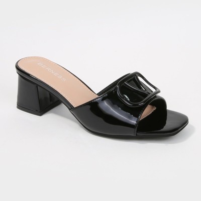 Berness Women's Catha Patent Wide Strap Slide Heels with Metallic Toe Ring