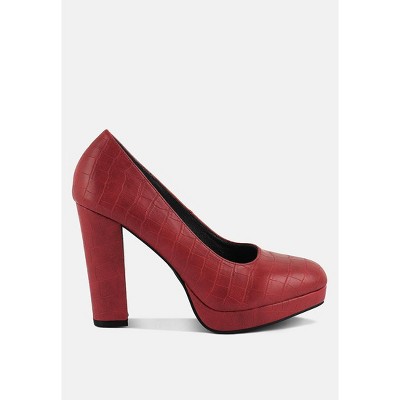 Velora - Brown Patterned Buckle Square Toe Block Heel Pump (Women) brown 9 Forever & Always Shoes US