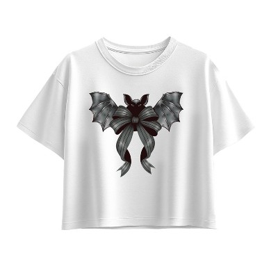 Girls' - Instant Message - Black Bow Bat Short Sleeve Boxy Graphic T-Shirt
