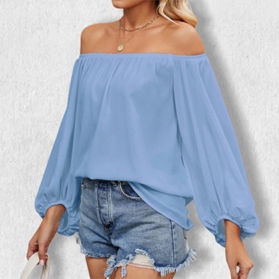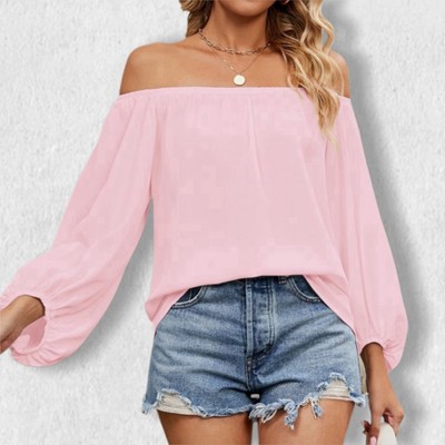 Women's Off - Shoulder Cinched Waist Corset Style Long Sleeve Chiffon Blouse, Short Casual Top