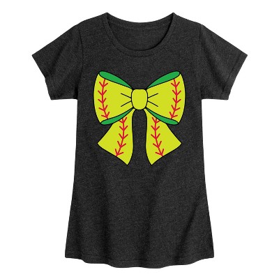 Girls' - Instant Message - Softball Bow Fitted Short Sleeve Graphic T-Shirt