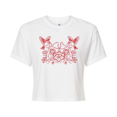 Women's - Instant Message - Bird Bow Flower Cropped Graphic T-Shirt