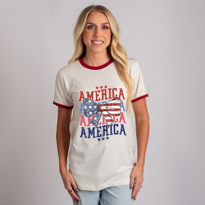 America Coquette Bow - Women's Ringer Graphic T-Shirt