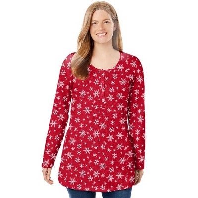 Woman Within Perfect Printed Long-Sleeve Henley Tee