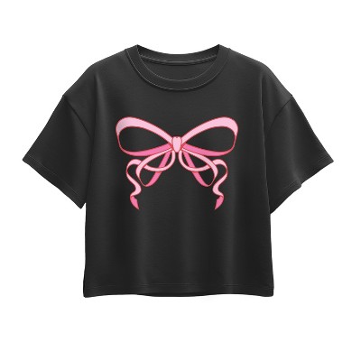 Girls' - Instant Message - Simple Bow Short Sleeve Boxy Graphic T-Shirt