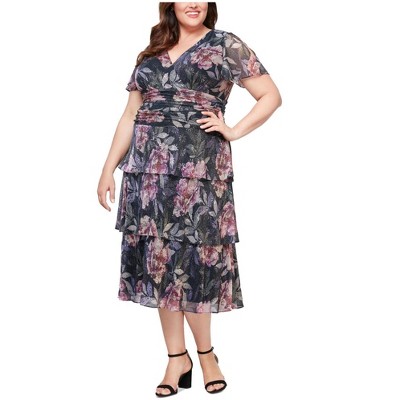 S.L. Fashions Womens Tiered Floral Midi Dress