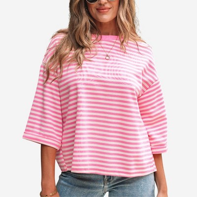 Amaryllis Women’s Striped Wide Sleeve Top with Open Back Statement Bow Detail Relaxed Fit Casual