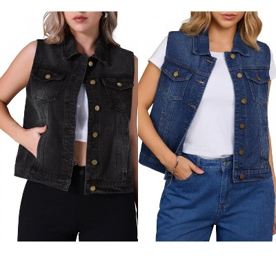 INSPIRE CHIC Women's Sleeveless Turndown Collared V Neck Button Down Waistcoat Denim Vest