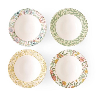 Spode Morris & Co Bistro Pasta Bowl, Set of 4 Large Bowls with Assorted Designs, 10.5 Inch, made of Fine Earthenware, Dishwasher Safe, Made in England
