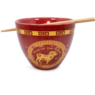Silver Buffalo Sanrio Hello Kitty x Nissin Cup Noodles Red Ceramic Ramen Bowl and Chopstick Set