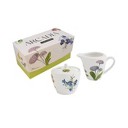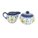 Storied Home Hand-Painted Stoneware Sugar Pot and Stoneware Creamer with Lid and Bamboo Spoon, Multicolor