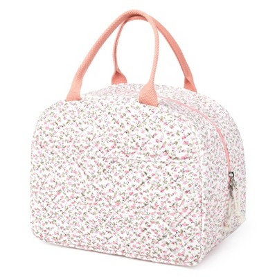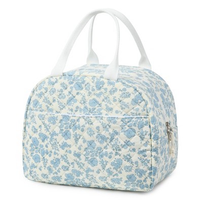 Narwey Lunch Box for Women Quilted Insulated Lunch Bag Tote Cute Reusable Floral Cotton