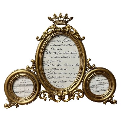 Slickblue Retro Crown Photo Frame, Metal with Gold Finish, Oval Center and Two Round Side Frames