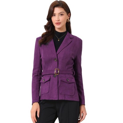 INSPIRE CHIC Women's Faux Suede Belted Lapel Single Breasted Work Outwear Blazer