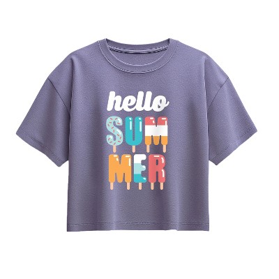 Girls' - Instant Message - Hello Summer Short Sleeve Boxy Graphic T-Shirt