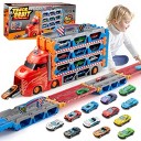 Joyfy Toy Truck for Kids, Racing Car with Lights Sounds, Foldable Track Carrier Truck Toy, Birthday Christmas Gift for Boys Girls 2 3 4 5 Years Old