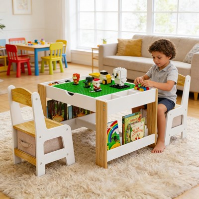 JVNOXK 2in1 Play Table and Chair Set (includes 2 chairs)LEGOcompatible with 7 storage compartments, modern activity learning desk play furniture