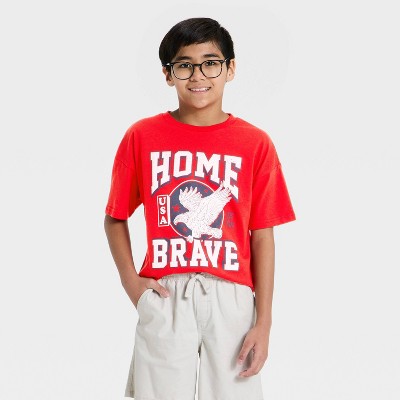 Boys' Bioworld Americana USA 'Home of the Brave' Short Sleeve Oversized Graphic T-Shirt - Red