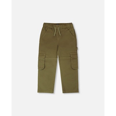 Deux par Deux Boy Stretch Twill Carpenter Pants Dark Khaki Green