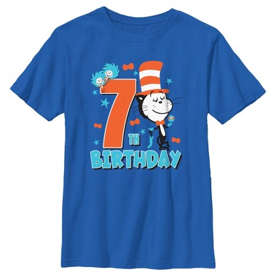 Boy's Dr. Seuss Cat in the Hat and Friends Birthday T-Shirt - 7th Bithday Boy - Medium