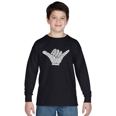 LA Pop Art Boy's Word Art Long Sleeve - TOP WORLDWIDE SURFING SPOTS Black Medium