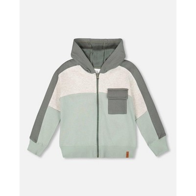 Deux par Deux Boy Full Zip Fleece Color Block Sweatshirt Green Gray