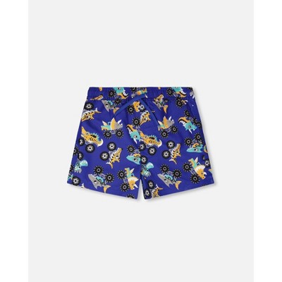 Deux par Deux Boy Boardshorts Blue Truck Print