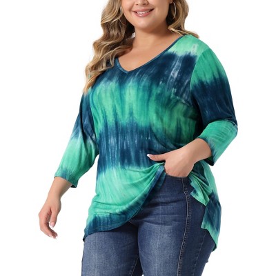 Women's Plus Size Tie Dye 3/4 Sleeve Side Slit V Neck Trendy Spring Tops - Agnes Orinda