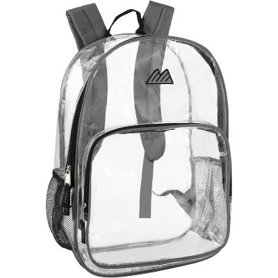 Summit Ridge 17 inch Waterproof Clear Backpack with Water Bottle Holder Stadium Approved Heavy Duty Clear See Through Backpack (Grey)