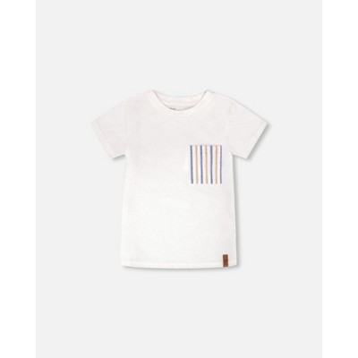 Deux par Deux Boy Jersey T-Shirt with Chest Pocket White