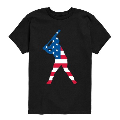Boys' - Instant Message - Baseball Player Silhouette Flag Short Sleeve Graphic T-Shirt