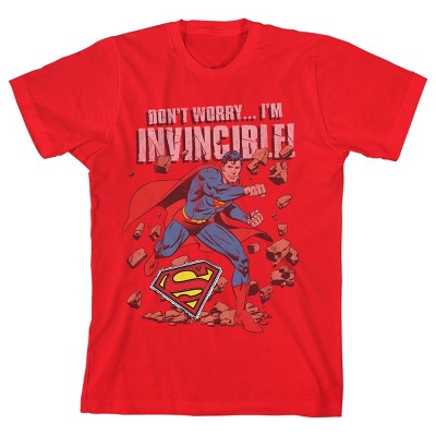 Superman Don't Worry I'm Invincible Boy's Red T-shirt