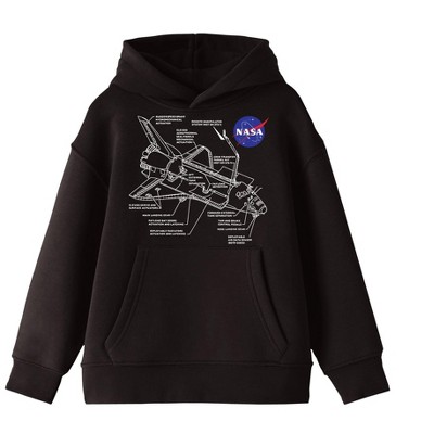 NASA Space Shuttle White Line Schematics Youth Boys Black Hooded Sweatshirt
