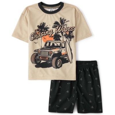 The Children's Place Boys Short Sleeve Surfboard Vehicle Pajamas