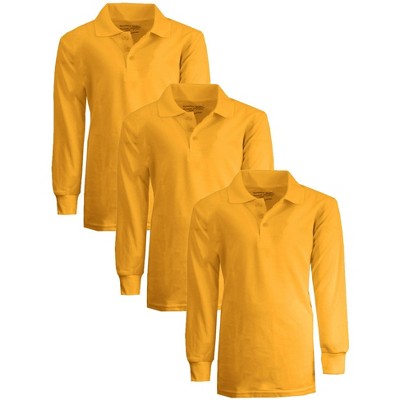 Galaxy Authentic Boy's Slim Fit Long Sleeve Polo Shirts-3 Pack