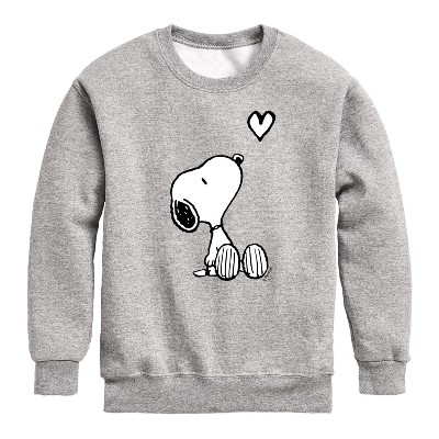 Boys' - Peanuts - White Snoopy Heart Graphic Long Sleeve Fleece Sweatshirt
