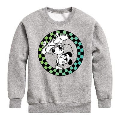 Boys' - Disney - Mickey Skateboarding Checkered Circle Graphic Long Sleeve Fleece Sweatshirt