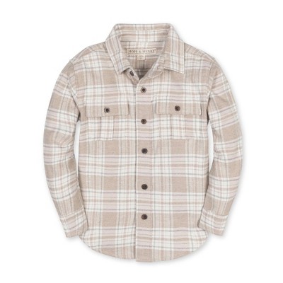 Hope & Henry Boys' Organic Long Sleeve Flannel Shirt with Double Flap Pockets, Kids