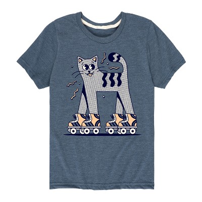 Boys' - Instant Message - Retro Cat Roll Skating Short Sleeve Graphic T-Shirt