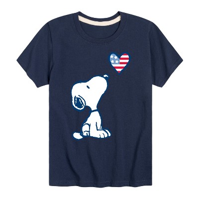Boys' - Peanuts - Snoopy USA Flag Heart Short Sleeve Graphic T-Shirt
