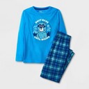 Boys' 2pc Smiley World Christmas Long Sleeve Pajama Set - Blue