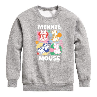 Boys' - Disney - Minnie Mouse Multicolored Grid Graphic Long Sleeve Fleece Sweatshirt