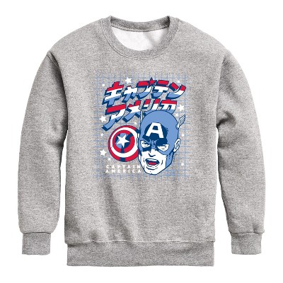 Boys' Captain America Katakana Graphic Long Sleeve Fleece Sweatshirt - Athletic Heather - Small