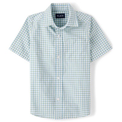 The Children's Place Boys Short Sleeve Gingham Poplin Button Up Shirt